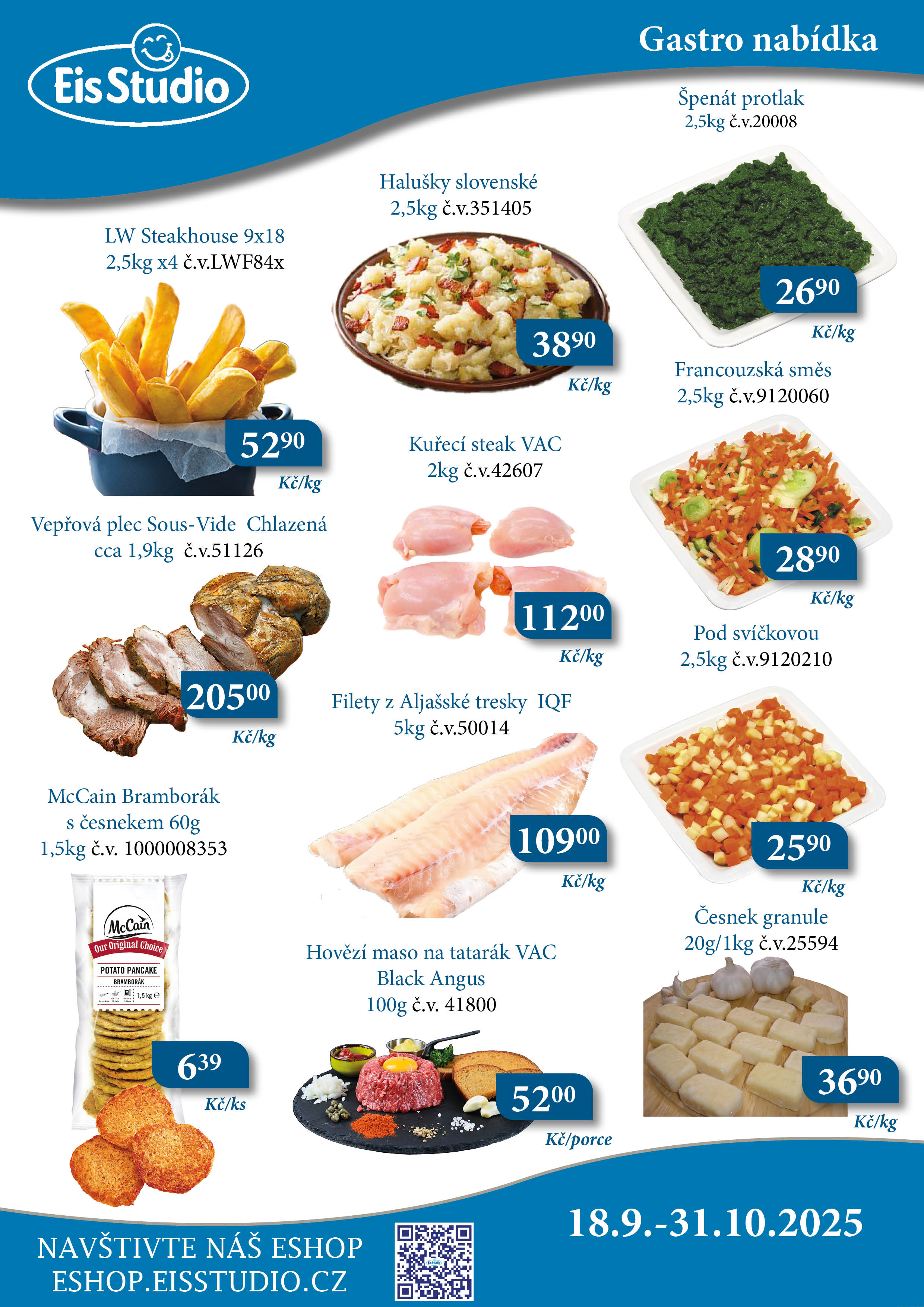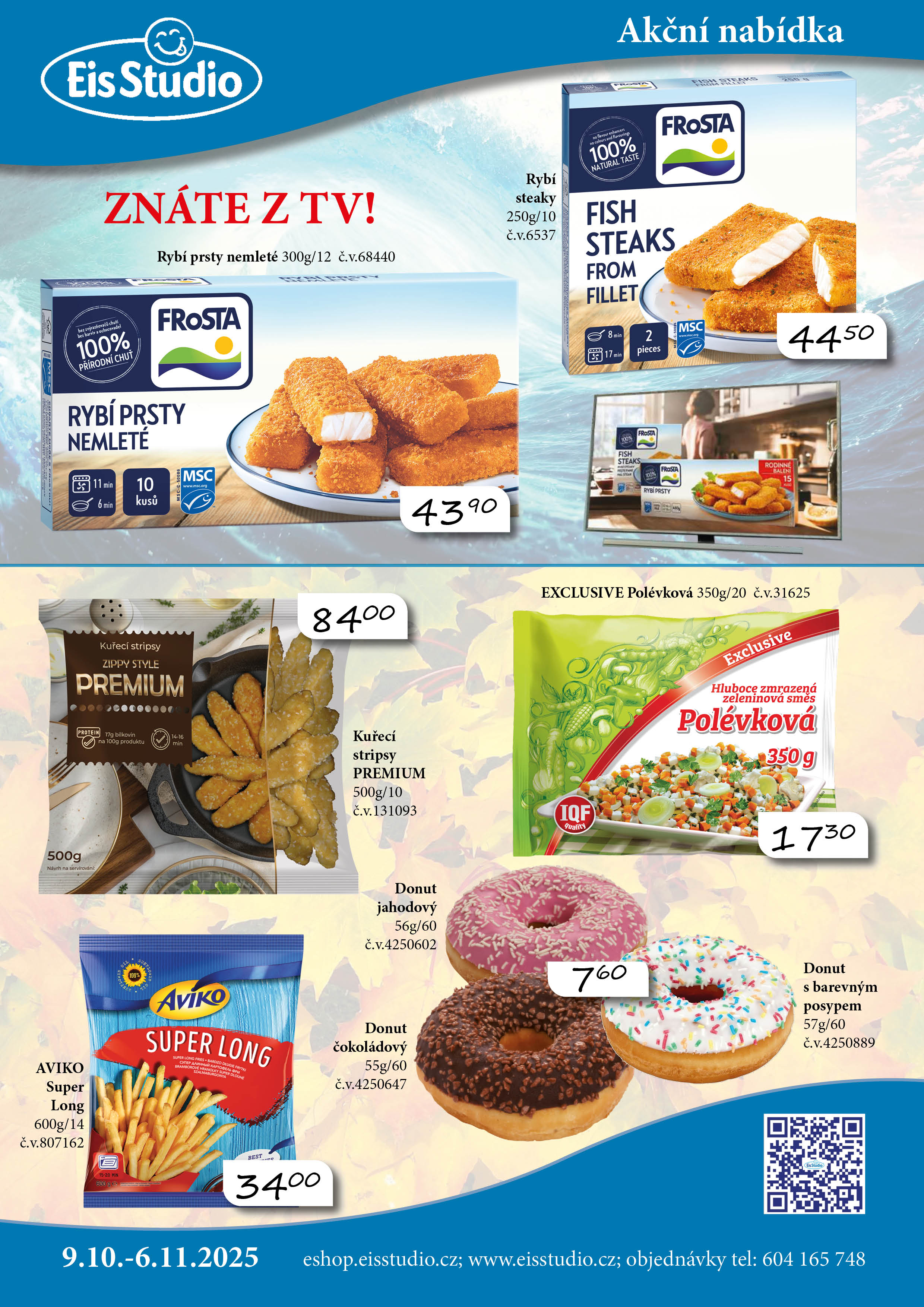 V nabídce, která je upravována podle ročního období, najdete výrobky renomovaných firem jak domácích, tak zahraničních. Uvedené ceny jsou bez DPH, včetně dopravy k zákazníkovi. Pravidelně je nabídka obohacována o aktuální novinky. V sortimentu jsou zahrnuty ryby, rybí výrobky, bramborové výrobky, zmrazená zelenina a zeleninové směsi, drůbež a výrobky z drůbeže, pizzy, hotová jídla, polévky, ovoce, smetanové a ovocné krémy.
